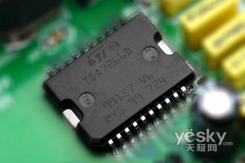 3块主芯片了构成了H2电路系统的核心,TL084是一块高速四通道运算放大器,转换速率为13v/us。一枚TL084就可以完成4个声道的讯号运算工作,作为H2的前级芯片,TL084负责立体声讯号的前级放大以及优化运算处理,让通过后级放大芯片的电讯号与H2的声学结构以和扬声器特性完美匹配。SC9325S是H2的数字音量控制芯片,作用于系统音量在0dB至-78dB范围内进行衰减控制;此芯片采用多晶电阻,内置等响度电路和7级直流输出音量电平表,有效提升立体声的回放质量。立体声功放芯片采用ST意法半导体公司出品的TDA7266,负责驱动H2两只全频带单元。芯片超宽的工作电压,带有短路保护和热保护功能,芯片内部末级功率输出采用MOS管桥接输出,音质出众。