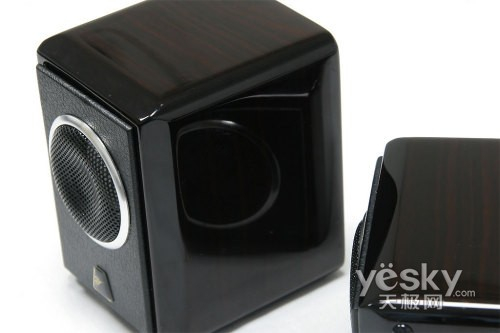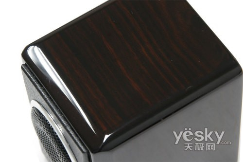 惠威H2的体积为79×95×115mm,天然黑檀木皮+钢琴漆工艺在强光下,肤质的纹理清透,光泽四溢。