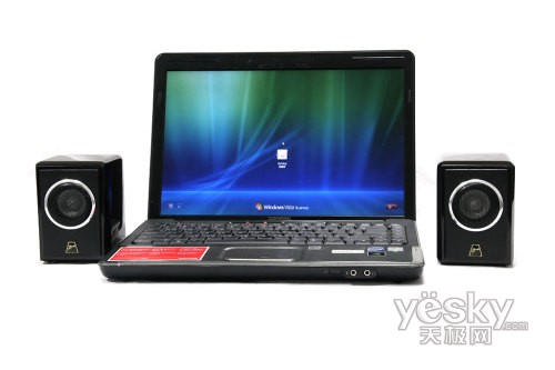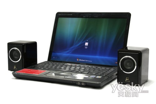 作为一款高端笔记本音箱,我们选择了东芝笔记本作为惠威H2的搭档,后面的测评也会使用这款笔记本的内置声卡来作为声源。下面先看下搭配的近照吧: