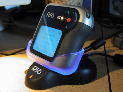 Rio Karma是帝盟2003年重点扶持的主力产品之一,这个系列共有20GB和40GB两个版本,体积为77.5×29×79.5mm,重量约为155g,支持MP3/WMA/Ogg Vorbis,预设5种播放EQ,锂电池可以连续播放15小时,主机本身带有双路RCA线路输出,可以直接同室内的音响设备相连接——这点相当方便。采用USB 2.0接口并带一个以太网接口,可以通过网络传输文件。Rio Karma配备了森海塞尔MX300耳机,随机附件有充电底座、RCA电缆、以太网电缆连线和充电器。值得一提的是蓝色底座,设计的相当漂亮。