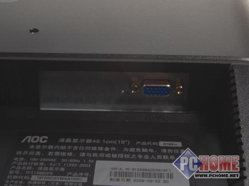 AOC 919SW仅采用了15针的D-Sub接口,对于一般用户来说,还是可以满足使用需求的。并且经过了3C认证,用户可以放心使用,需要的朋友不妨考虑一下吧!