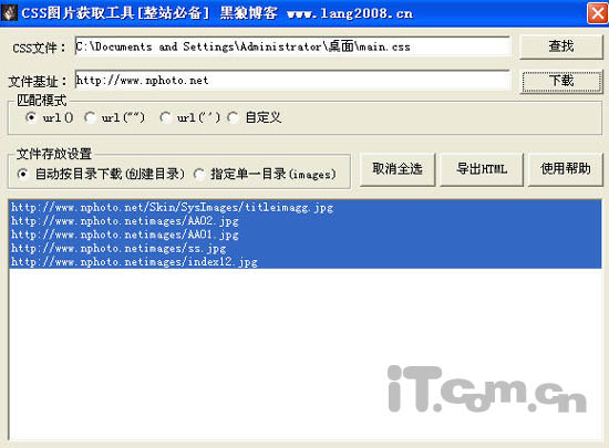 友情提示:在上述介绍的“CSS图片获取工具”的使用中要注意“文件基址”一栏的填写,基址也就是添加的那个CSS文件所在网站首页的地址,如果写错可就下载不到文件了;“匹配模式”一项不用理会,保持默认选择项即可。