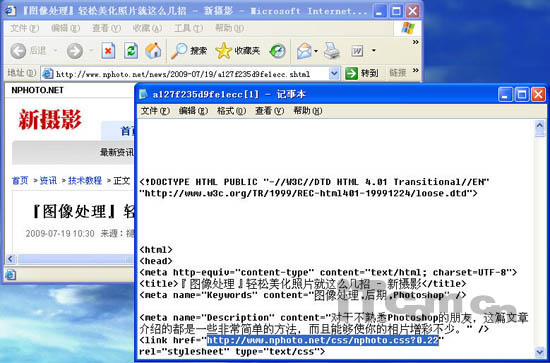 在浏览器中打开css图片所在网页,然后查看网页源文件并找到css路径;将路径再复制到浏览器中下载到本地计算机上,如图03所示。