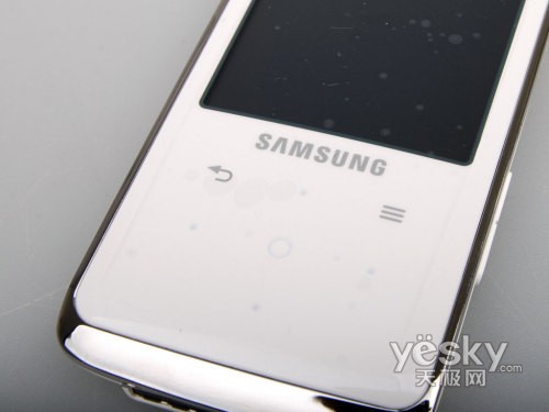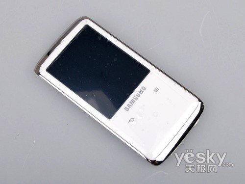 此次我们天极数码频道收到了三星YP-Q2是白色的,据我们所知,三星YP-Q2还有黑色的版本。三星YP-Q2外形时尚,犹如时下流行的手机一般流畅圆滑,而且手感舒适,握在手中,就像是把玩一款温润的暖玉。机身正面是一块2.4英寸的WQVGA显示屏,显示屏上覆盖有透明的亚克力板,防止刮伤和灰尘的进入。