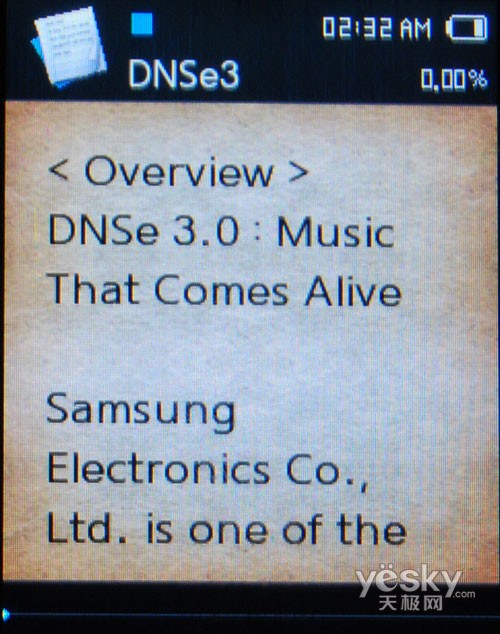 三星YP-Q2支持TXT文本文档阅读,我们可以在电子书功能中进行字体、颜色、显示模式进行等操作,并且还可以开启音乐或是FM广播,一边看小说一边听音乐。其中三星YP-Q2默认的背景颜色与字体笔者十分喜欢,褐色书卷的背景搭配黑色的宋体,让人看起来十分的舒服。
