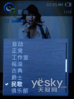电子乐部分,我们选择了Disco乐曲2000年等一回,选用了三星DNSe功能的摇滚音效配合,三星YP-Q2的摇滚音效很好的把Disco乐曲强烈的节奏感以及震人心房的感觉发挥了出来,不过摇滚音效DNSe功能没有专门的电子乐音效,那种电子乐独特的音感没能很好的宣泄出来,不过三星YP-Q2还有手动设置EQ功能,完全可以补足这个不足。