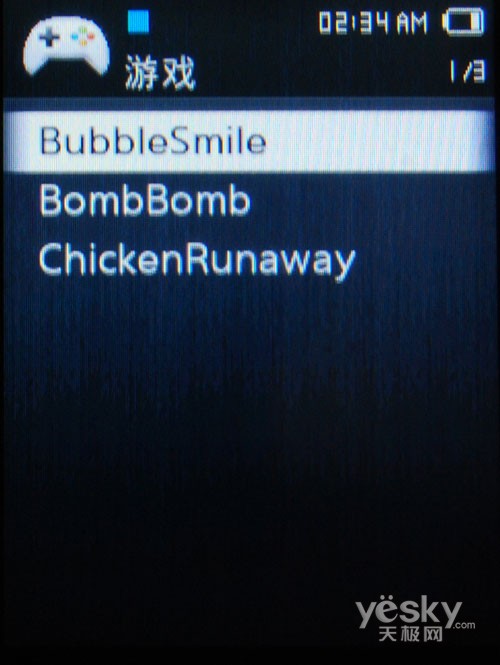 此次的三星YP-Q2还添加了游戏功能,机器内部内置了三款游戏,分别是BubbleSmile,BombBomb和ChickenRunaway,这三款游戏都是手机上的JAVA游戏,耐玩度不错,是你听音乐看视频看小说之外,又一个打磨时间的好选择。