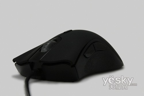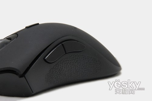 优派变速神鹰在鼠标左右2侧都加上了防滑的“鲨鱼皮”,能够有效起到防滑的效果。左侧的2个按键被很好的安置在弧形曲线的内部,使用起来相当方便,但因为按键过大,有时候会形成误操作,用户需要时间去适应。
