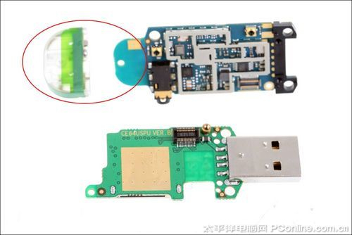 这是拆开后的两套不同厂家的3G无线上网卡内部结构。下面这款华为的上网卡采用的是模块化组装,这便于维修但使得成本增加。而上面一款产品则是直接把各个部件焊接在一起。