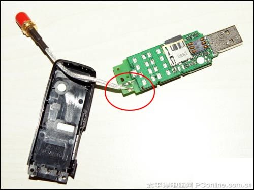 其实方法很也简单,我们的网友是通过在3G上网卡原来的天线位置,焊上一根外置SMA天线接头。以后就可以想装什么样的增益天线就装什么样的,而且全向、定向的随他选。如果大家觉得没必要也可以直接把天线焊到这个位置上,这样还能减少信号的衰减。需要注意的是,TD-SCDMA、WCDMA、CDMA2000 EV-DO等3G制式的频段是不同的,天线也不通用,大家在购买天线的时候要选对适合的频率。