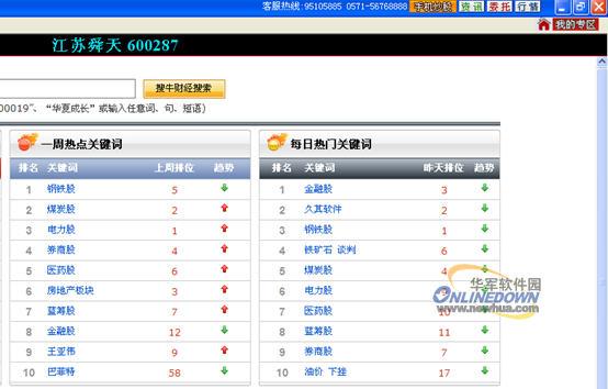 搜牛还为股民提供了其他的常用实用功能,如打开搜牛的“搜索风云榜”,2009年7月31日搜索当日关键词,结果如下图5所示,我们看到了“久其软件”排在第二位,而久其软件7月31日进行网上申购成为近期投资者关注的热点,它排位如此靠前就不足为奇了。