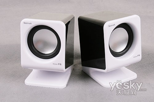 甲盾F6 在色彩上采用了黑白的经典设计,机身大量采用黑色高亮塑料,前面板和支架部分采用白色高亮塑料,整体对比强烈,V字形的造型显得愈加时尚和简洁,铝质振膜上的磨砂银色光芒也为整体的设计添彩。