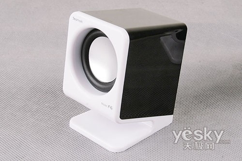 甲盾F6 在材质上采用一体化高亮塑料制成,通过V字形的折叠将支架与箱体连成一体。由于是采用了迷你2.0的设计思路,因此整个造型仍然较为方正,单元部分采用了小单元常见的铝质振膜,整体的风格还是较为时尚,简洁。