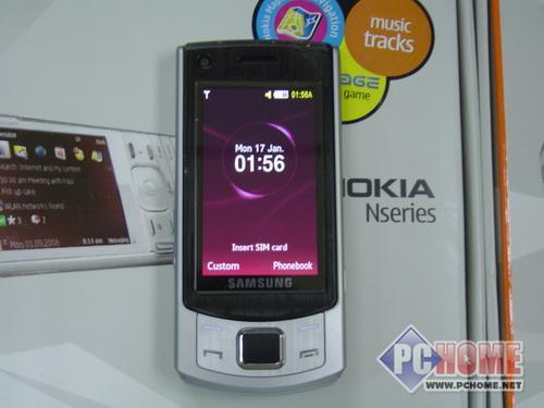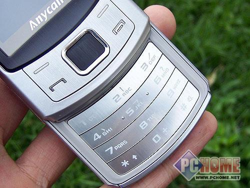 三星S7350的外观采用滑盖造型,超薄轻盈设计,用料相当精致,总体色调采用了黑色和银色的搭配,稳重而不失时尚,屏幕的黑色边框采用了金属拉丝工艺非常精美,屏幕下方的导航键有点类似诺基亚N系列,简洁大方。数字按键部分采用金属材质,键程适中,手感相当不错。