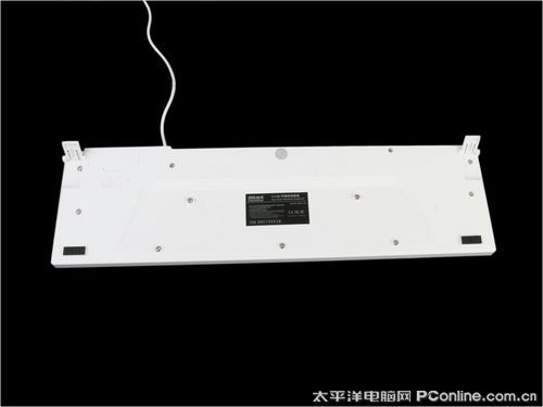 网际快车 魅尚5100纯平键盘背面也是相当的简洁,虽然看不到有导水孔,但是其采用了漏水式结构防水设计,应该能够防水的。背面的左上角有一个电池舱,应该是通用模具,可以预测这款键盘是有无线版本的。