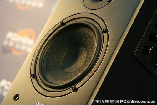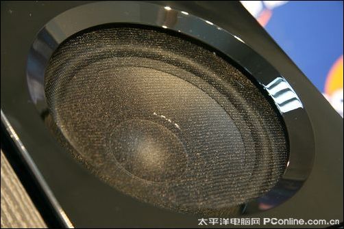 低频单元就比较难看出原貌了,因为被防尘网罩挡住了,并且其不能拆卸。从官方材料看,振膜材料为PP盆,而从配置的大功率看,硬朗的低频诉求依然是很强烈的,秉承麦博一贯的声音风格。