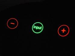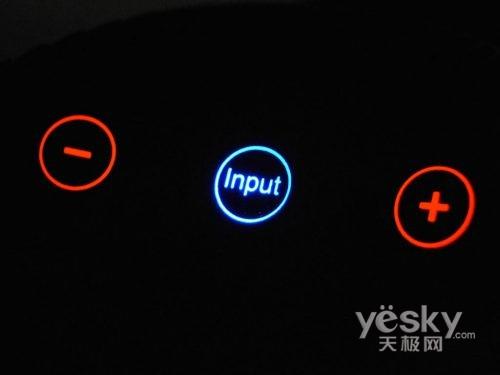 当e20处于待机状态时,顶部操控面板的“input”按键会呈现七彩柔和变化的效果,并一明一暗的缓慢闪动。