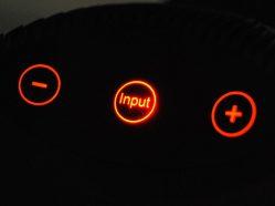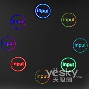 轻触“input”按键会激活音箱进入开机状态。继续轻触input,则进入输入端口切换状态,“input”按钮会依次产生蓝、红、绿三色变化: