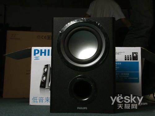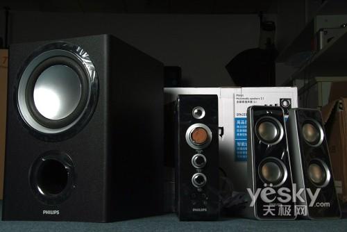 飞利浦SPA3350音箱的最大卖点在于在普通音箱2.1的架构上又添增了一个独立功放,让玩家从此不用再弓身猫腰,趴到电脑桌下面去费心费力的调试音箱,而是可以根据不同的媒介及播放素材,选择使用最合适的放送方式。特别值得一值的是,飞利浦SPA3350音箱的低音炮保持了飞利浦在低音上的一贯水准,其特有的动态低音提升设计,呈现给音乐迷深沉澎湃的低音效果。