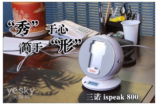 三诺ispeak 800音箱体积小巧、造型美观、做工精细,一上市就凭借着亮丽的外形迅速占领市场,网友们更是亲切的把它称之为“音乐蛋”。虽然三诺ispeak 800体积小巧,但在功能上却丝毫没有缩水,它囊括了主流iPod音箱的基本功能、以及时钟、闹铃等,完全可以满足一般用户的使用需求。
