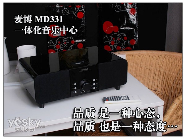 麦博MD331,还有另外一个名字,叫做:“一体化音乐中心”。这款产品外形极具家居风格,其外壳经过钢琴漆工艺处理,非常适合在居室内摆放。