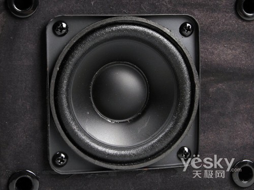 e20的体积小巧,因此它并没去追求强悍的低频表现,而是着重加强中高音的音质。漫步者使用了共点同轴扬声器来完成这个任务。e20内部所使用的是一颗3.5英寸的同轴单元,它由复合振膜的中低音单元和1英寸丝膜绢振膜高音单元组成。