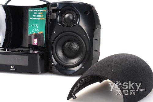 罗技Pure-Fi Dream的外形很特别,其左右两侧是扬声器单元,并且被黑色的尼龙材质的网纱所覆盖。Pure-Fi Dream的扬声器单元是1英寸丝膜高音单元与3英寸重低音单元的组合。在机身的正面中间的位置,设置了一个iPod专用接口,产品还附带了不同规格的塑胶挡板来适应各种不同的iPod产品。