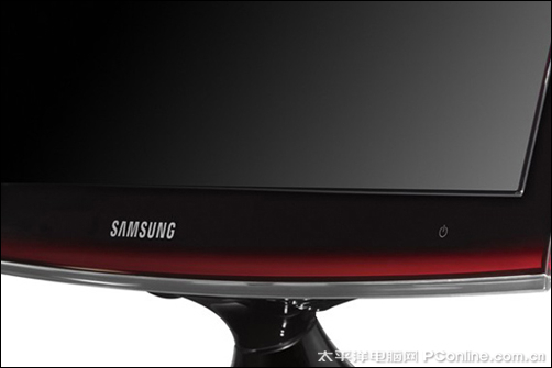 三星 T220+显示器的外观依旧绝色美艳,环绕冰醇红琉晶边框,流光溢彩,给人整体的感觉是时尚而不失大气。