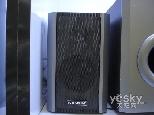 兰欣W-8500二代音箱的卫星箱的边缘采用了与低音炮相同的棱角处理,同样不足的就是它的边缘未采用圆滑处理,尤其是后方的两个边角容易造成划伤。在卫星箱的前面板处是一层金属网罩设计,网罩上面还有一个弧形的凹陷,在网罩的底部是“NANSIN”的LOGO。在网罩下方为用户提供了一颗2.75英寸全频单元,阻抗4Ω,输出功率10W×2。
