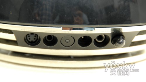 Spyro的接口部分位于低音单元的底部,阵容可谓非常庞大,可以看到从左至右分别是:右声道卫星音箱接口、音频输入端口、电源开关、电源接口、左声道卫星音箱接口以及低音调节旋钮;这里一个比较特殊的设计,我们可以看到左右声道接口的方式是不同的,一个是类似PS/2的接口,另外一个则是莲花口,这样的设计可以使用户不用去寻找所对应的音箱就能轻松的完成连接,可谓一个聪明的人性化设计;