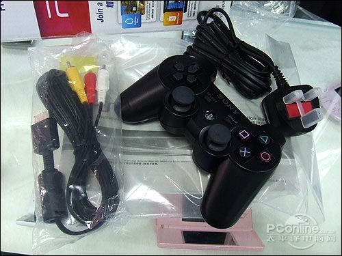 索尼 PS3 Slim附件中包括:说明书、无线手柄、AV线、电源线