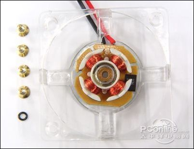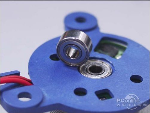 经过对“冰刀”风扇的拆解,真相一目了然,铭瑄GTS250变形金刚高清版所采用的风扇轴承的确是如假包换的双滚珠轴承,而且轴承还采用了全封闭处理,有效地防止灰尘进入轴承内导致风扇转速变慢或停转的现象出现。那为什么铭瑄要在全系列的显卡散热器装上双滚珠轴承的风扇呢?笔者相信细心的读者在阅读过上文的轴承介绍后,应该会得到了一点启示。