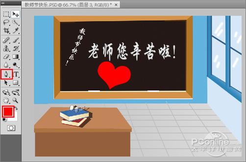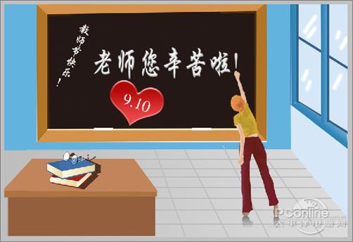 教师节快到了!先祝天下的老师节日快乐!下面我们来绘制一个教师节海波,主要用了渐变、钢笔、图层样式等工具,希望大家喜欢!