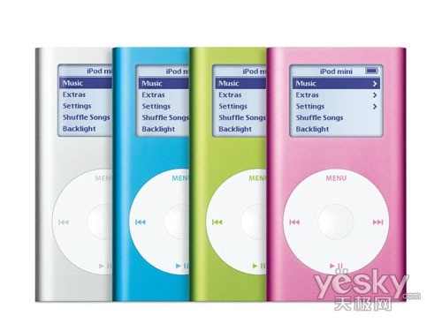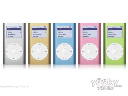 2004年1月,iPod家族发生了一些“变动”,这便是mini iPod的诞生,它并不是属于第四代产品,只能算是iPod家族成员优化或者结合外族的结果。外观颜色上,iPod mini显得更令人心动,五彩斑斓。采用了1英寸的微硬盘作为存储介质,4GB的iPod mini可存储1000首歌曲,售价只要249美元。