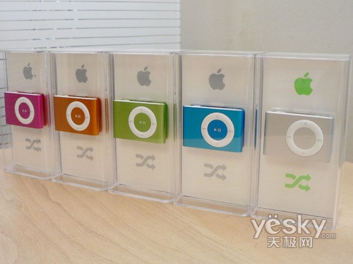 新iPod shuffle,其实是在iPod shuffle 2的基础上进行了颜色变换,其它地方并没有变化,体积为69.8 mm×52.3 mm×6.5mm,重49.2g。1GB售价79美金。