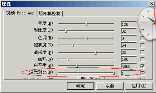 打开amcap或是摄像头测速软件(这两个小软件均可在蓝色妖姬官方网站下载中心下载),点击Options—Video Capture Filter,出现上图,把逆光对比(Back light)选项拉到0是室内,拉到1是户外。
