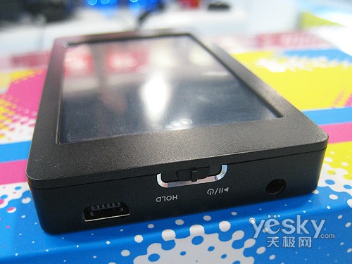 蓝魔RM990在机身的顶部设有Reset复位键,侧边的开关键旁则是传输接口和耳机接口。