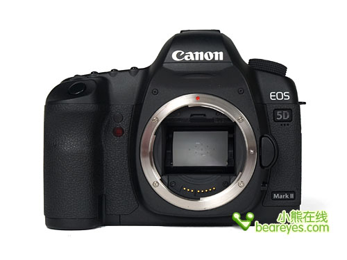 在外观设计方面,佳能EOS 5D Mark II与之前的5D极为相似。机身采用镁合金材料,轻巧且兼顾,具有出色的电磁屏蔽性能。外形尺寸为152×113.5×75mm,重约810g。手柄处采用凹凸设计,搭配大面积的蒙皮处理,大大提升了用户的操作手感,也保证了防滑、稳定耐用的需要。
