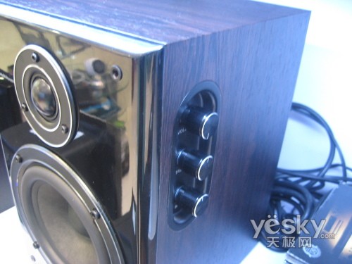 在箱体的侧面设有金属材质的调节旋钮,分别负责调节音量、高音、低音的调节,方便用户操作。D1080MKⅡ采用了全新的有源电子分频技术,并且设置了中点电位器。