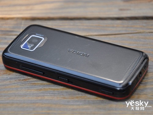 当然作为一款XpressMusic系列的手机,独立的多媒体控制键自然是不可缺少的,在诺基亚5730的屏幕边缘处我们发现了该机用于多媒体控制的快捷键。另外3.5毫米的耳机接口的加入也使得该机的音乐性能更为强劲。相对于该机正面设计的复杂,5730XM的背面设计就要简单的多。一枚320万像素的摄像头位于背面的左上方,除此以外该机的背面并没有过多的修饰。
