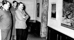 | 希特勒和手下在博物馆中“视察”艺术画。 |