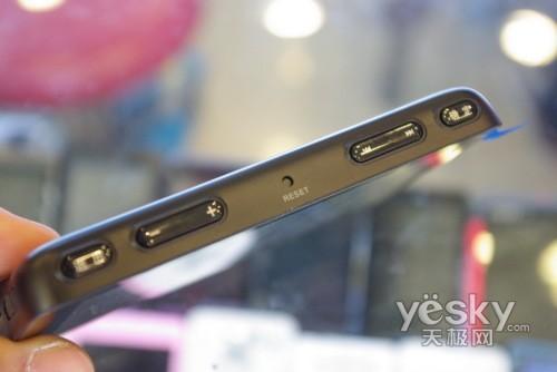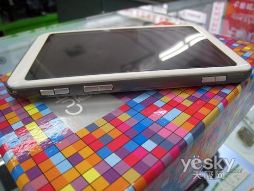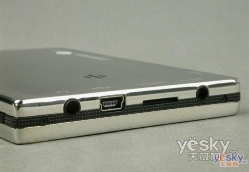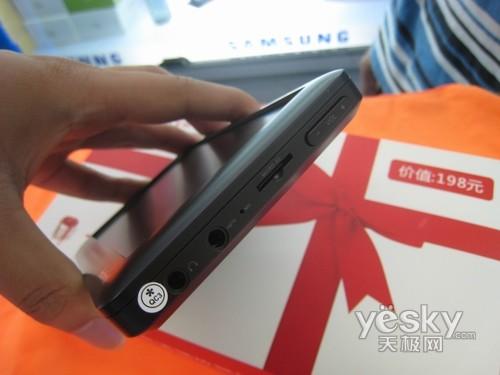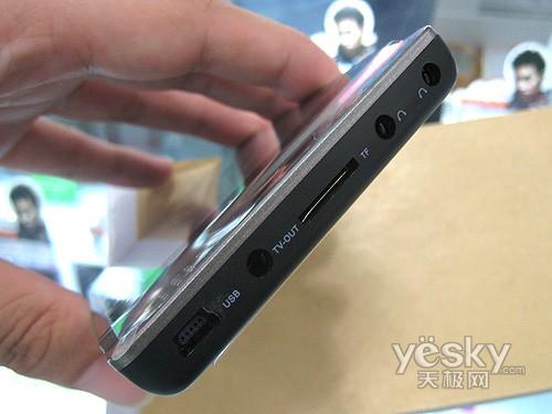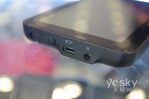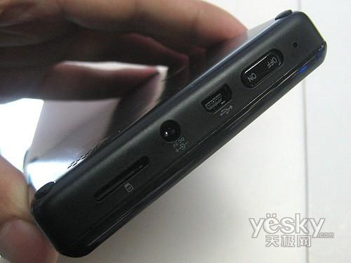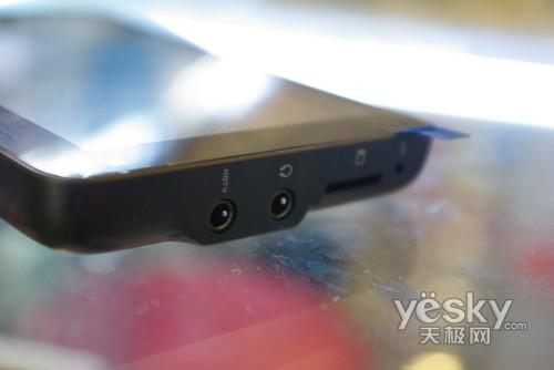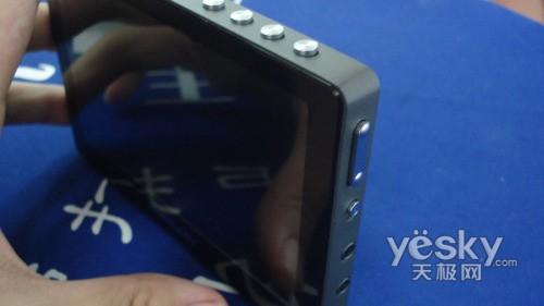 在按键和接口设计方面分工明确,机身右侧为“接口集中营”,从上到下依次是TV-OUT、耳机插孔、USB接口、TF卡扩展槽以及DC电源充电插孔。左侧仅有拨动式电源开关,和内置高灵敏麦克风。背面细小的长方形小孔是H600的外放喇叭,看起来虽然很小不太起眼,但声音洪亮。