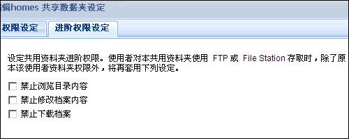 与DS409slim相同,DS109也具有“家目录”功能,管理者可以为每一位本地用户建立一个专属文件夹(家目录),只有该使用者可以透过CIFS、AFP、FTP及File Station 存取该资料夹。但系统管理者 (admin) 可以存取所有使用者的家目录,并藉由家目录分享档案给特定使用者。家目录集中储存于系统预设共享数据夹homes,子数据夹名称与各使用者账号相同。网域使用者不能使用家目录。