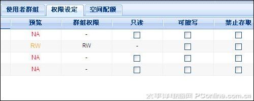 DS109的权限管理功能非常完善,除了可以设置用户对文件夹的读写权限,还支持用户空间配额管理,这一管理功能在多人共用一台NAS时非常实用。