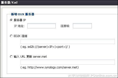 使用eMule前,您必须先连线到一个ED2K服务器。ED2K服务器可存放和分享档案索引,并搜索档案及其来源。像国内知名的VERYCD,用户可以手动将服务器资源文件添加进DS109(第三个选项),这样EMULE就彻底实现了本土化。