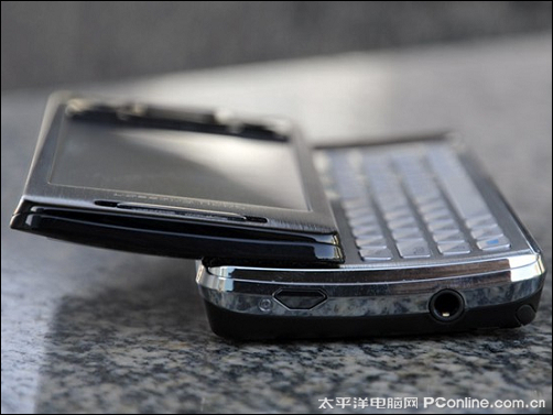 索爱X1之所以被命名为X1,就是因为屏幕下方独特的“X”形的导航键盘设计,显得个性十足。正体采用黑色,搭配以俊朗的直线机身,显得刚毅冷峻。虽然是全尺寸键盘设计的手机,但机身并不像想象的那么宽大。机身三围是110.5×52.6×17毫米,重量则达到了145克,非常有质感。当侧向打开滑盖时,优美的弧线迅速映入眼帘,按照人体工程学原理设计的键盘,手感颇佳。另外带有弧度的键盘,也支撑屏幕会自动向上倾斜一个角度,这样在使用X1时用户会更加清楚的看到屏幕的显示内容。