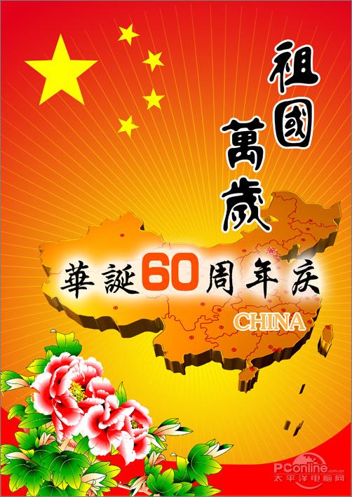 国庆佳节,举国同庆。60年,光辉岁月弹指挥间,60年,中华大地沧桑巨变。2009年,我们伟大的祖国迎来了她的60岁生日!下面用Adobe Photoshop CS4制作国庆主题海报,希望大家喜欢,同时也祝网友们国庆节快乐!