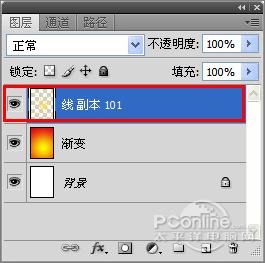 6、单击面板下方的添加图层蒙板按钮,为线副本101图层添加蒙版,选择工具箱中的渐变工具,在选项栏上选择“前景色到背景色渐变”样式,与径向渐变,在页面拖曳渐变,效果如图8所示。
