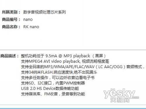瑞芯微官方网站给出的RK nano参数描述