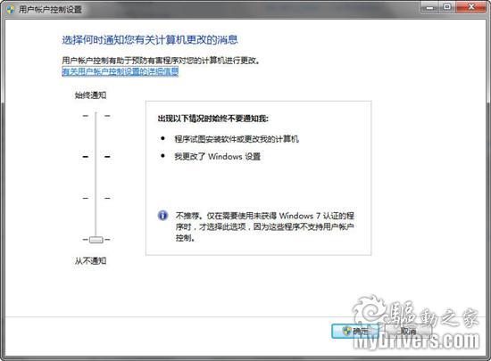 28、用户帐户控制(UAC)。Vista里备受争议的新功能,如今更加灵活,分成了四个不同等级。